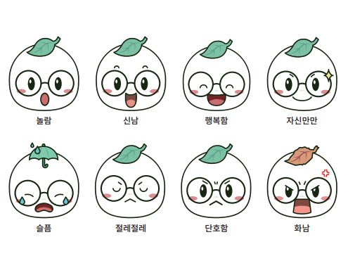 표정 활용: 행복, 놀람, 자신만만, 단호함, 슬픔 등 다양한 감정 표현 제공